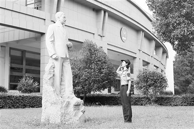 图①:学员焦菲在毕业前夕,到革命先驱雕像群前致敬。王泓钧摄