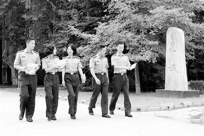 图②:毕业学员收到教员亲笔书写的毕业寄语后,边走边交流。吴祺磊摄 金陵梧桐茂密时,道是情意最浓。 那天,天空晴朗,国防科技大学国际关系学院毕业学员焦菲,特地来到综合楼前的革命先驱雕像群前,与先辈的雕像合了一个影。 “我要把这张照片珍藏,无论去往哪里,先辈们的无限忠诚和勇气智慧是我永远奋斗追求的方向。”焦菲的话,是许多毕业学子共同的心声。 临近毕业,这所学校与毕业学员们又一次重温了那个早已许下的约定:你们怀揣光荣梦想投身军旅时,在这里坚定理想;你们背上青春行囊奔赴战位时,在未来牢记初心。 无论你走多远,不要忘了55号的印痕 熄灯号响后,自习室里很静,静得只听见学员徐文斌的翻书声。这张陪伴了他4年的课桌上,一本素雅的小册子被静静摊开——书名叫《55号印痕》,里面承载着80余位教员对全体毕业学员的临别叮嘱。 “青春时,要把最宝贵的精神印刻进人生。”翻看小册子第一眼时,徐文斌脑海里蹦出来这样的感受。 板桥街道振兴路55号,在这个对他来说无比熟悉的校园里,流传着无数教员与学员的点滴故事。在《55号印痕》中,教员们的寄语虽然各有不同,但字里行间都映射着一个厚重的嘱托——忠诚。 “无论你走多远,我都希望你们能牢记使命……”看到副教授方晓志的寄语时,徐文斌一下子想到了两年前的自己。 “部长阁下,请您移步这边,我们马上要前往会场。”那是一次重要的外事活动,还是大二学员的徐文斌作为联络员,在与外方工作人员沟通后,落落大方地将对方高级官员,从驻华使馆的轿车上请至会议用车,确保活动顺利进行。 这次活动中,还有很多需要徐文斌独立完成的任务,徐文斌都完成得有礼有节。“外交无小事,每一刻,你都是国家的形象。”带队出发前,方教授的嘱托给了他独当一面的勇气。 “在任何时候,都要保持忠诚的气节,都要有在绝境险境中的过人胆略。”“风险和考验也许会不期而至,希望你们敬终如始,坚守忠诚。”“忠诚、奉献、严谨、求实是人生的基石,你们是55号永远的牵挂。”……一句句语重心长的叮嘱,让学员们在“最后一课”更加深刻地懂得了忠诚的意义。 无论她去哪里,都不会辱没父辈的旗帜 “妈,我去哪儿都好,您一定要注意身体,别担心。”学员刘天语坐在宿舍楼的台阶上,安慰着电话那端因自己毕业分配而焦虑的母亲,把心中的坚定说得是那样的温柔。 母亲并不知道,放下电话后,刘天语的眼泪已一滴滴地流下。其实,这样的场景在5年的军校生活中已经重复了无数次。 刘天语是一名烈士的后代。她的父亲很久之前在一次执行任务中英勇牺牲了。上军校这几年,刘天语从一个需要亲人牵挂呵护的孩子,成长为一名英姿飒爽的军人。 曾经,不少人想走近刘天语,去了解她的成长历程以及她与父亲的故事,可她总是沉默以对。那是她心底的伤痛,不愿意去触碰,只有坚强起来,才能不让母亲失望。 入学初,刘天语曾因环境陌生而缺乏归属感,一度“任性”要退学。后来,在队领导的关心下,在战友们的陪伴和鼓励中,她不断地成长进步。 一次,在队里组织的“传承红色基因、弘扬英雄精神”交流会上,刘天语动情地说:“同学们的深情讲述让我回想起了自己的父亲,想起了他驾驶战机时的帅气模样。曾经,年少的我只看到了他的英姿与骄傲;现在,我更敬佩他的勇敢和坚持。我想像他一样,将使命举过头顶,把责任扛在肩上,把事业装进胸膛。” 从那以后,她和身边的同学一样,变得越来越坚强,这个爱笑的女孩如今经常感染着身边的人。 马上毕业了,刘天语正如教导员刘宏周前些天在毕业学员思想形势分析会上评价的一样:“无论她去哪里,都不会辱没父辈的旗帜。” 和刘天语一样,来自祖国西北的王晓伟也是烈士子女,也在5年前走进了学院,成为人民军队的一员。身边的战友谈到他时,总会在最后加上一句“练起来真不要命”。备战军事基础技能比武,他扛着水桶练奔袭;综合演练中,他主动请缨,带领全班固守高地;联考备训时,他带伤推着战友坚持到终点…… 2016年暑假,王晓伟在完成百余公里青海湖骑行后,再一次来到父亲曾经战斗过的那片热土。 第一次到那里时,年少的他曾问母亲“爸爸去哪了”?而这一次,他选择独自一人。在他的骑行日志中有这么一句话,仿佛是他与父亲跨越时空的对话:“妈妈曾说您是英雄,而今我在军营读懂了您!” 7月1日,王晓伟走进队干部办公室,郑重地递交了早已写好的《戍边申请书》。那晚,他抬头仰望星空:爸爸,我要走上您曾经战斗过的那片热土。 精神的传承,就是对母校最好的报答 “毕业分配,你想好去哪儿了吗?”一时间,楼下的宣传栏前比往日多了许多喧闹,和战友们一起挤在其中的学员蔡雄,被不知是谁抛出的这个问题“撞”了一下。 记得当年还是大一新生的蔡雄,第一次看到上百份《戍边申请书》整齐地排列在自己面前时,自己也曾听到过类似的问题…… 现在,蔡雄似乎已经明白,院训中的“忠诚与奉献”始终是与军人紧密相连的,他也不再是当年那个谈“戍边”色变的毛头小伙儿了。 然而,在他亲历毕业季时发现,相比他的班长们,自己还是少了一分勇气和从容。 “学员在毕业时做出怎样的选择,其实最能反映他们的成长。”该院学员大队政委常成在谈及近期的毕业分配工作感受时说,坦然接受祖国挑选,志愿到基层、到军事斗争准备最