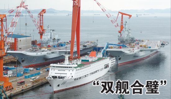 据香港大公网10日报道,当天清晨,中国首艘航母辽宁舰在濛濛细雨中接替国产航母进入大连造船厂的船坞进行维修。中国两大航母首次在大连造船厂内同向并列,呈现出气势恢弘的“双舰合璧”之态。早前暂离码头的88舰,当日中午亦回到辽宁舰原泊位待命。 5月27日,网络照片显示,辽宁舰回到大连造船厂,与首艘国产航母首次同框亮相。 据报道,在辽宁舰停靠大连造船厂码头进行维护工作期间,两艘万吨级055驱逐舰同日下水引发外界广泛关注和猜测,中国军迷也在欢呼“大连岸边曾短暂出现双航母水面编队”。 根据网络上的消息,7月4日,国产首艘航母在完成近一个半月的坞内舾装后再次出坞,为辽宁舰腾出了船坞。 |