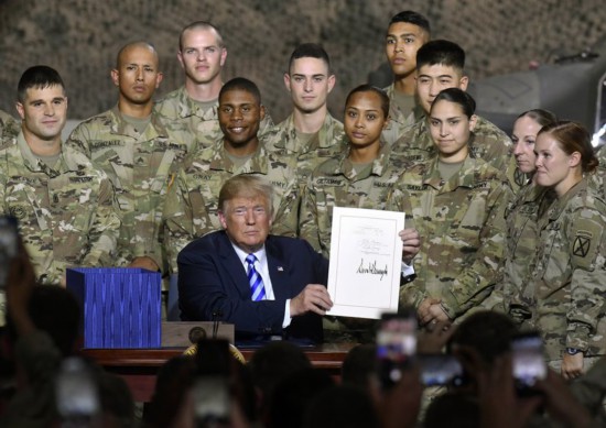 签字现场图 当地时间13日,美国总统特朗普在纽约德拉姆堡基地签署“2019年国防授权法案”授权7160亿美元国防开支。 在当日演讲中,特朗普告诉美军士兵,“我们有7160亿美元”,可以为现役、预备役美军和国民警卫队招募新兵,同时替换掉老旧的坦克、飞机、舰船和直升机,代之以更先进的致命性装备。他还说,这是美国现代历史上“对我们军事力量最大的一笔投资”。 “希望我们的军事力量未来足够强大,强大到根本无需使用它们。而一旦我们使用了,任何人(别国)都不会再有机会”,特朗普说。 此前媒体已报道过,这部对中俄措辞极其强硬,且有大量涉台内容,鼓励美台军事交流的“2019财年国防授权法案”只待特朗普签字,就会成为美国法律。 中国外交部发言人本月2日曾“敦促美方摈弃冷战思维和零和博弈的过时理念,不得放任含有涉华消极内容的法案成法,更不能实施有关的条款,以免给中美关系和重要领域的合作造成损害”。 美联社13日说,特朗普此次签署的国防授权法案还在军人住房安置,如何应对全世界基地内出现的性骚扰指控等方面做了安排。 但在特朗普上周大力推崇的“太空军”建设上,“2019财年国防授权法案”未做安排,相关预算会在下一财年安排。 13日,美国各大媒体报道此事的角度“千篇一律”:特朗普签署“约翰-S-麦凯恩2019财年国防授权法案”却不感谢麦凯恩。 CNN说,特朗普在演讲中感谢了一堆人,点了许多美国议员的名字,唯独不提麦凯恩。这部国防授权法案全称是“约翰-S-麦凯恩2019财年国防授权法案”,以向正在家中与脑癌搏斗的麦凯恩致敬,而特朗普此前被曝光,曾公开奚落麦凯恩的军旅生涯,称“一个被俘过的人算不上战争英雄”。(刘洋) |