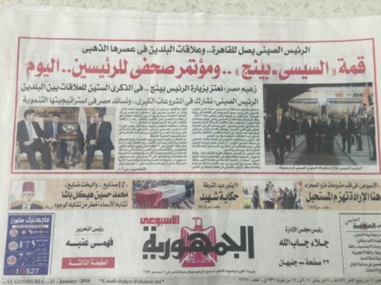 主流媒体《共和国报》开辟专版:“习近平访埃:两国关系新开端”。