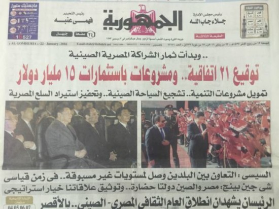 《共和国报》21日:习近平抵开罗,两国关系迎“黄金时代”。