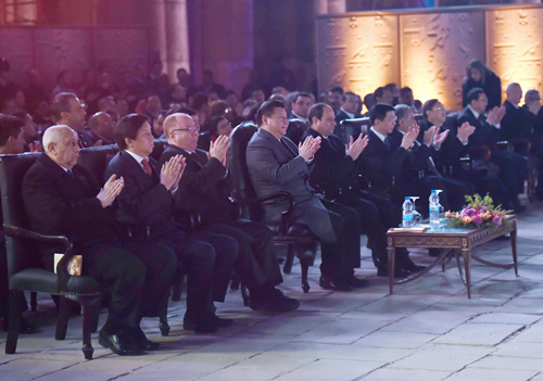1月21日,国家主席习近平和埃及总统塞西在古老的卢克索神庙广场共同出席中埃建交60周年庆祝活动暨2016中埃文化年开幕式。新华社记者张铎摄 人民日报全媒体平台(中央厨房)埃及卢克索1月22日电 (记者杜尚泽)21日,国家主席习近平和埃及总统塞西在古老的卢克索神庙广场共同出席中埃建交60 周年庆祝活动暨2016中埃文化年开幕式。 习近平抵达卢克索神庙时,塞西在停车处迎接。两国元首沿主道参观卢克索神庙,埃及文物部部长达马提进行讲解。习近平和塞西边走边听,畅谈两国古老文明的特色,共忆中埃文明源远流长的交流互鉴。 习近平指出,卢克索是古埃及文明的集中体现。这里的建筑反映出了古埃及人民令人惊叹的智慧和科技水平。中埃都是文明古国,我们有必要加强人文交流,深化民间友好,巩固两国合作民意基础,推动双方共同发展、共同繁荣。 塞西表示,习近平主席亲临卢克索出席相关活动是对埃及的巨大支持。埃方对伟大的中华文明饱含敬意,对中国人民取得的发展成就充满钦佩,愿深化两国文明交流,永远做中国真诚的发展伙伴。 夜幕下,卢克索神庙广场灯火辉煌,流光溢彩,洋溢着喜庆友好的气氛。舞台上,中国红灯笼和埃及金字塔形象交相辉映,中埃文明在卢克索上空相遇。 晚上8时30分许,习近平和塞西共同步入开幕式现场,全场观众起立鼓掌。埃及文化部部长希勒米和中国文化部部长雒树刚先后致辞,共同宣布2016中埃文化年启动。 习近平和塞西同中埃各界人士200多人共同观看了由中埃演职人员联袂献上的《两个伟大文明对话》主题演出。 演出在编钟礼乐《金石和鸣》中拉开序幕。舞蹈《千手观音》蕴含着中国敦煌艺术瑰宝沿着丝绸之路来到埃及。中埃民乐合奏中国乐曲《渔舟唱晚》和埃及乐曲《隆加舞曲》演奏出两国民族器乐的深情对话。杂技《男女对手顶》展示了生命的力与美。芭蕾舞《埃及之花》和《婚礼双人舞》中,展示了芭蕾舞的艺术魅力。在埃及交响乐团协奏下,中国钢琴家献上经典的中国钢琴协奏曲《黄河》第四乐章《保卫黄河》和埃及钢琴曲《尼罗之歌》。演出在中埃两国艺术家共同演唱的歌剧选段《凯旋进行曲》和《今夜无人入睡》中落下帷幕。 演出结束后,习近平和塞西亲切会见了两国艺术家,祝贺他们演出成功。 当日下午5时30分许,习近平结束对开罗的访问,乘专机赴卢克索,继续对埃及进行国事访问。专机抵达卢克索机场时,埃及文化部部长希勒米、民航部部长卡迈勒、卢克索省省长巴德尔等前来迎接。 22日,国家主席习近平在卢克索参观古埃及文明遗址。埃及文物部部长达马提陪同参观并作讲解。习近平指出,这些遗迹是古埃及文明的集中体现,为我们研究古埃及历史、文化、社会、科技等方面情况提供了大量文献资料。中国和埃及都是拥有悠久历史的文明古国。两大文明要加强交流互鉴。 王沪宁、栗战书、杨洁篪等参加上述活动。