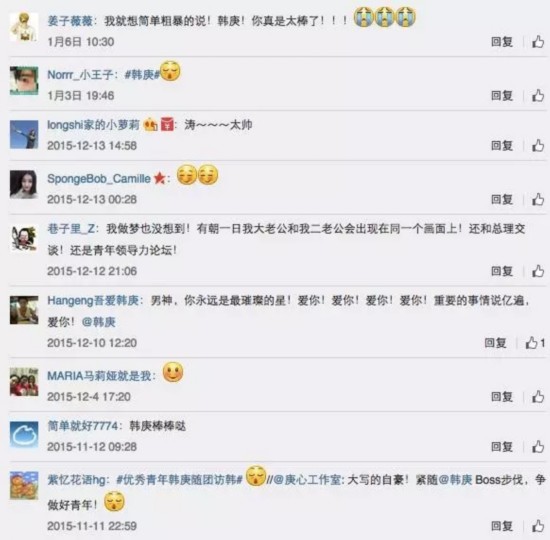 克强访韩带韩庚、宁泽涛从CCTV-5游到CCTV-1,出访娱乐产业大国怎少得了贵圈大咖?总理此次携“中国青年精英代表团”一同赴韩,其中包括韩庚和宁泽涛,偶像与总理同框,粉丝们炸裂了,新浪微博的#优秀青年韩庚随团访韩#话题,收获4525万阅读量和11万次评论。