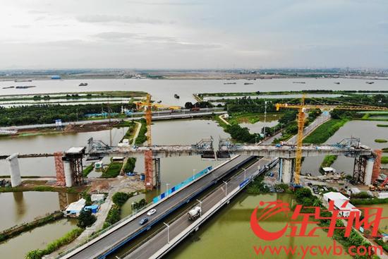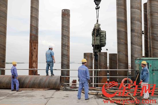72对斜拉索拉起万吨钢桥 金羊网讯 记者张豪,通讯员许晗、邓晓峰报道:南沙港铁路控制性工程——龙穴南水道特大桥工程进展迅速。靠近龙穴南水道万顷沙一侧的主桥171#主墩于近日完成围堰封底,正紧张进行承台施工,靠近龙穴岛一侧的主桥172#主墩更是已浇筑起两节墩身,预计明年4月前索塔封顶。另外,架设钢梁的准备工作也在同期进行,预计今年11月开始架设主桥边跨钢梁。南沙港铁路站前六标段三分部经理曹科告诉记者,“我们纵向横向同时施工,主桥预计明年6月底合龙。” 3.4万立方混凝土浇筑主墩 近日,记者来到位于龙穴岛一涌附近的中铁广州局南沙港铁路站前六标段三分部龙穴南水道特大桥施工现场。一走上栈桥就听见巨大的轰鸣声,沿着栈桥望过去,就是龙穴南水道特大桥主桥的两座主墩之一172#墩的施工位置。“这里是172#墩,对面的171#墩上周刚完成围堰封底,也开始承台施工。”曹科告诉记者,“主墩的墩身加索塔总高近200米,约要用34200立方混凝土浇筑。” 据曹科介绍,墩身和上面的索塔是一体浇筑,考虑到索塔高度和珠江口水面的大风等安全因素,正在浇筑的172#墩采用了液压爬模的施工工艺。传统的翻模施工需要在浇筑完一节后拆卸模具再上移重新装模,既耗时耗力又存在较大的高空作业危险,而液压爬模用来浇筑的模具无需拆卸,只通过液压油顶顶住并沿着墩身逐级向上爬升即可,再加上全封闭的安全护网,提升了施工效率和安全。