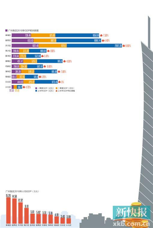 ■图/廖木兴 广州各区今年上半年经济情况如何?成绩单出来了。近日,广州各区陆续公布2018年上半年经济数据,与今年第一季度情况相比,GDP排名前三名的仍然是天河区、越秀区、黄埔区,虽然二三名之间差距缩窄,但越秀区仍以微弱的优势高于黄埔区。 此前,GDP增速冠军一直是南沙区,该区是广州唯一一个增速保持双位数的区。令人意外的是,南沙区今年一季度和上半年的数据却遭遇滑坡,上半年GDP比去年同期只增长了1.6%,排名第七。增速冠军换成了天河区,上半年增速达9.8%;增速亚军是花都区,达9.0%,仅次于天河区,成为一匹“黑马”。 ■新快报记者 李应华 GDP第一梯队仍为天河越秀黄埔三区 今年上半年,广州市地区生产总值达10652.98亿元,同比增长6.2%。根据数据排名以及前后差距统计,广州各区GDP排名可以分为几个梯队,分别是:第一梯队——天河区、越秀区、黄埔区,第二梯队——番禺区、白云区、海珠区,第三梯队——南沙区、花都区、荔湾区、增城区,第三梯队的增城区从2016年开始全年GDP破千亿元,目前广州剩下从化区一个仍待努力。 作为经济总量第一梯队的领头羊,天河区上半年GDP总量突破2000亿元,稳居广州各区之首。不仅如此,天河区上半年GDP增速也位于全市第一,达9.8%。 据了解,天河区取得骄人成绩的关键是调整产业结构。目前,天河区第一、二、三产业的比例分别为0.00:9.19:90.81,其中第二产业增加值达192.3亿元,增长4.4%;第三产业增加值1900.1亿元,增长10.5%,占GDP比重同比提高1.3个百分点,贡献率达95%。在第三产业中,金融业、新一代信息技术、现代商贸业、商务服务业四大主导产业较快发展,实现增加值1315.4亿元,增长13%,占GDP比重达62.9%。 在排行榜中,越秀区经济总量以微弱优势超出黄埔区,但黄埔区GDP增速为7.5%,远高于越秀区的4.4%。这两个区第一季度GDP差距为100亿元左右,黄埔区在第二季度单季度收窄了接近60亿元的差距。两个城区从黄埔区区划调整后开始你追我赶,排名次第领先,在下半年排名可能又互换。 第二梯队中,番禺区上半年GDP以92亿元的优势反超白云区,海珠区GDP增速稳居全市第三,达7.8%。从第二季度单季GDP来看,番禺区和海珠区都超过了500亿元,白云区第二季度GDP则还略低于第一季度。 第三梯队中则跑出花都区这一匹“黑马”,该区上半年GDP增速仅次于天河区,达9.0%。令人意外的是,作为广州城市副中心,南沙区上半年经济出现明显乏力,GDP增速仅为1.6%,位于全市倒数第二。此前南沙区排名一直力压花都区,如今南沙区增速放缓,今年一季度被花都区以全市最高8.2%的增速反超,幸亏第二季度南沙区发力,才逆转排名。这两个区是否会成为黄埔区和越秀区那样的一对竞争对手,还要看下半年南沙区增速能否恢复,以及花都区能否坚持高速增长。 人均GDP:常住人口少的城区占优势 除了GDP可以作为地区经济实力的主要指标,人均GDP也是一项重要的参考数据。 根据广州市统计局公布的2017年末各区常住人口数量,新快报记者统计出各区的人均GDP值,其中排名前三的还是黄埔区、越秀区、天河区3个区,它们的人均GDP都超过了10万元,但排名与GDP值排名正好相反,常住人口更少的黄埔区人均GDP超过15万元,成为冠军。 常住人口数量排名倒数第二的南沙区,则以人均GDP超过9万元的数额排名第四位,而且与排名其后的区拉开一定差距。荔湾、番禺、花都、海珠四区的人均GDP都在5万元左右,常住人口最多的白云区则排名倒数第二。从化区由于常住人口最少,这项数据与各区的差距远没有GDP的差距大。 黄埔规模以上工业总产值占全市四成 在工业总产值方面,黄埔区、广州开发区规模以上工业 (简称规上工业)总产值仍领跑全市,占全市41%,规上工业增速达6.4%,比广州全市平均增速6%还高。 黄埔区、广州开发区取得优异的成绩与近年来不断优化升级工业结构有关。今年上半年,黄埔区、广州开发区的汽车、电力、食品、化工、石油、电气机械六大支柱产业增长稳健,完成产值2927亿元,增长6.7%,发挥了工业增长的主引擎作用,其中汽车、电力、食品饮料、电气机械增幅分别达13.7%、14.6%、16.7%、30.1%。工业企业利润增长达29%,技改投资增长38.3%,工业产销率98.2%,继续保持较高水平;其次,黄埔区、广州开发区不断加快重点项目的引进和建设。围绕战略性新兴产业,引进重大项目73个,总投资超1600亿元。乐金OLED、LG偏光片、粤芯、创维等重点项目建设进展顺利,新增动工项目21个,新增投试产项目45个。这些都使得黄埔工业产值大幅增长。 此外,花都区与南沙区规上工业产值排在第二、三位,花都区反超南沙区33亿元。在2017年,南沙区还以488亿元的优势超出花都区,而且上半年,花都区规上工业增速达12.5%,远高于南沙4.5%。 从花都区经济运行情况来看,该区产值居前的六大行业呈现“四升一平一降”。电气机械和器材制造业、纺织服装服饰业和汽车制造业,增长都超过一成,橡胶和塑料制品业与去年同期持平,皮革皮具业则同比下降。其中汽车产业对花都区支柱作用明显,汽车制造业累计实现产值864.19亿元,同比增长14.3%。其中,汽车整车产值686.58亿元,同比增长15.9%;汽车零配件产值176.56亿元,同比增长10.6%。 视点 南沙区找准定位 才能更好地发展 南方民间智库副主席、广州市社科院研究员彭澎告诉新快报记者,南沙区目前遇到的问题比较特殊,他认为主要是定位问题。此前南沙区产
