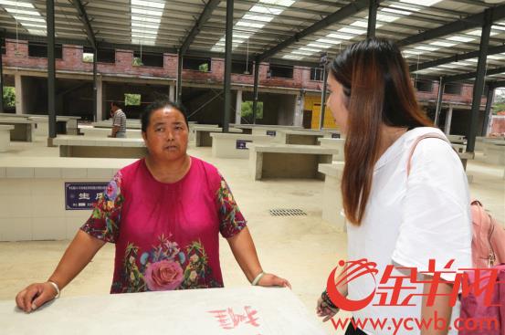 负责人告诉记者,建设新的农贸市场有三个原因,第一是解决搬迁户安置后的就业问题,第二是充分发挥当地种植业,第三是满足当地对规范市场的刚需。此前,老市场商贩随意沿街摆卖、占道经营,造成严重的交通堵塞、消防隐患和社会治安等问题。 “我们属于生态移民,现在居住环境好了,卫生好了,我们很高兴。”农户开心地向记者说道。“我知道啊,这是广州白云区给予我们的帮助。” 在农贸市场的蔬菜区,另一位商户龙国群,今年58岁,此前在老市场做油炸糍粑,现在将在新市场卖水果。记者了解到,大部分搬迁户家庭均由一人独自撑起养家糊口的任务。龙国群家有四人,她一人赚钱,由于子女都结婚早,还没能力提供足够的支助。