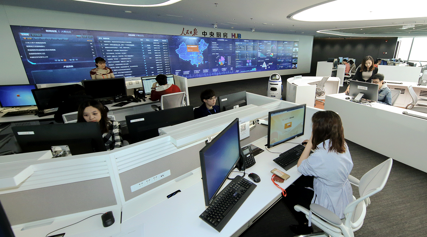 人民日报中央厨房。(资料图) 由支撑到赋能 驱动媒体生态全面进化 习近平总书记在“1·25”重要讲话中指出,从全球范围看,媒体智能化进入快速发展阶段。我们要增强紧迫感和使命感,推动关键核心技术自主创新不断实现突破,探索将人工智能运用在新闻采集、生产、分发、接收、反馈中,用主流价值导向驾驭“算法”,全面提高舆论引导能力。 技术迭代是传媒业转型升级的重要驱动力。5G、AI(人工智能)、AR(增强现实)/VR(虚拟现实)、区块链、云计算等信息传播技术快速发展,将重新调整媒体格局,深刻改变舆论生态,促使媒体融合产生蜕变。面对技术带来的深刻变革,媒体从自主研发到多方合作,纷纷投入技术创新大潮。 2014年8月,人民日报社启动了中央厨房建设,并于2016年2月正式上线。中央厨房改变了传统的新闻生产组织的形式,实现了新闻业务流程的扁平化、分众化、垂直化和差异化,促使新闻采编机构转变为服务平台。 2016年8月,在2016媒体融合发展论坛开幕式上,人民日报媒体技术股份有限公司联合腾讯云共同发布我国首个媒体融合云服务平台——中国媒体融合云,意在为媒体融合发展消除技术瓶颈。 2018年12月, 中央广播电视总台与三大电信运营商、华为公司合作建设了我国首个国家级“5G新媒体平台”,设立了5G媒体应用实验室,总台下属中国国际电视总公司与阿里巴巴集团签订技术合作协议,并在今年春晚、两会和“一带一路”高峰论坛及北京世园会报道中实现了5G+4K、5G+VR的全流程、全要素制播,产生了广泛影响。 2017年4月,新华社和阿里巴巴合资成立新华智云,共同打造“媒体大脑”。新华智云联席CEO傅丕毅表示,“从造纸术到广播、电视再到互联网,媒体往往是信息技术革命的第一批见证人,AI技术将在策划、采访、生产、分发、反馈等全新闻链路上赋能媒体,互联网技术之光正在照亮内容生产者前行之路。”随着“媒体大脑”“AI合成主播”等技术不断更新迭代,2019年8月,新华社智能化编辑部也正式投入运行。