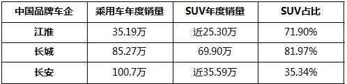 无论是速度第一的江淮,还是以量取胜的长安、长城,他们能在“微增长”的2015年收获优秀成绩,均离不开对SUV市场的深耕。从这几家“优等生”的细分数据来看,支撑中国品牌增长的正是SUV的持续火爆,如江淮的瑞风S3、长城的哈弗H6等招牌SUV车型,均是带动母品牌增长的关键。