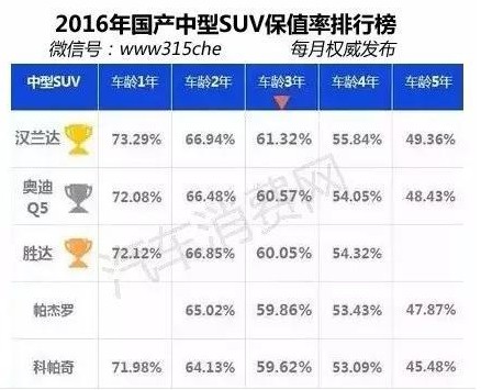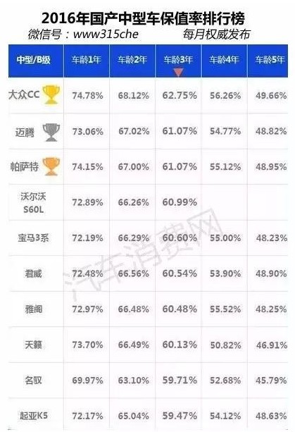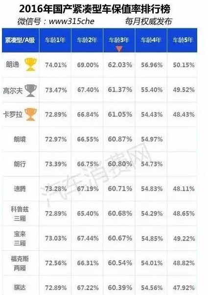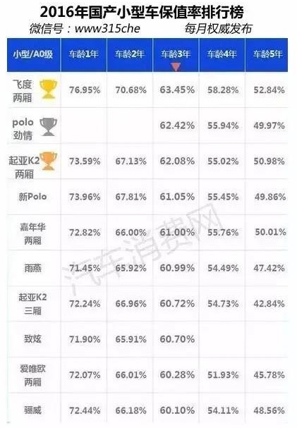 车子不同于房子,房子是保值甚至增值的,而车子却是买到手就贬值,购车时可参考下面某权威机构发布的《2016年乘用车保值率报告》,挑选保值的车型。