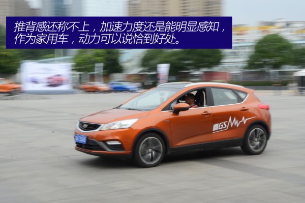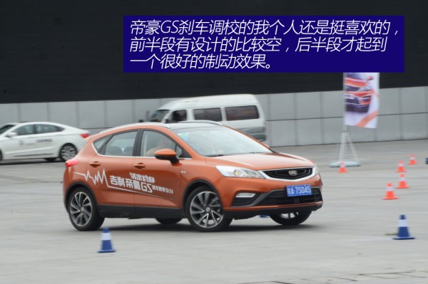 场地试驾包括直线加速、紧急制动、S弯以及道具体验。直线加速无疑是检验车辆的动力性能,即便是有车的朋友可能也很少会地板油对待自己的车辆,毕竟这对于车辆的伤害较大。厂家安排这样的测试也能让我们更直观地感受帝豪GS动力上的表现。关于大家对“1.3T动力够不够用”的问题我想在此可以给个肯定答复。中期大部分时间的加速力度还是挺不错的,推背感还称不上,加速力度还是能明显感知,作为家用车,动力可以说恰到好处。