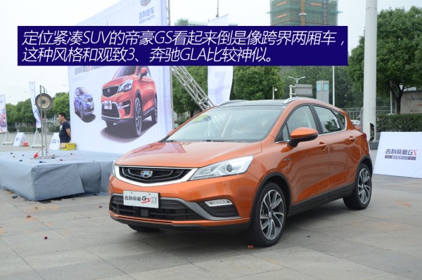 尽管厂家给帝豪GS的定位是紧凑SUV,不过它给我们的感觉就像一台两厢跨界车,我个人感觉倒是和长安致尚挺相似的。说GS是跨越SUV倒也无可厚非,毕竟底盘要比一般的两厢车高不少,再说尽管这个级别GS并无直接对手,但观致3,奔驰GLA不都是这种风格么?有了前辈打基础,所以就别纠结它是SUV还是两厢车了,关键是它的外形符合你的口味就好。