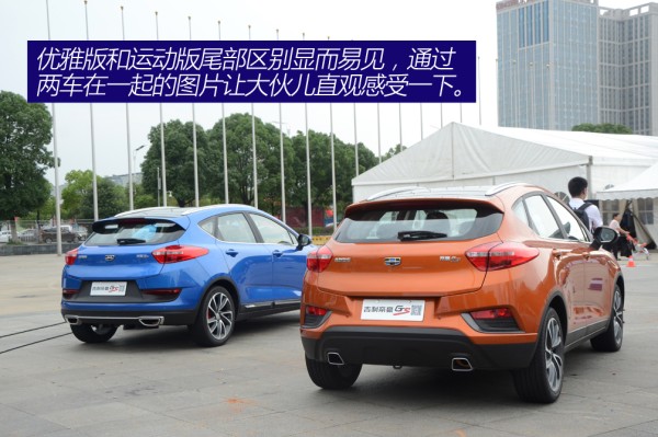 帝豪GS推出了优雅版和运动版两种外观,两车主要在前脸以及尾部细节等处发生变化,运动版的设计要更年轻化一些。从前脸不难看出,运动版车型回纹格栅的面积更大,下包围使用了大量的银色的镀铬装饰,看上去要时尚靓丽不少。