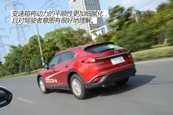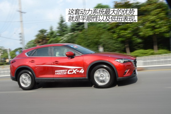 对于2.0L动力有所担心的消费者我认为可以打消这种顾虑。在国内限制的120km/h时速之内,动力够用但算不上充沛。可能就是这种状态:你感觉开起来很轻松,家用足以,但即便大脚油门,它也很难给你很强的感官刺激。当然,我觉得CX-4这套动力最吸引人的就是动力的平顺性以及低扭的表现。平顺性可以说在20万内最好的了,而相比于同级的一些1.5T、1.4T的涡轮车型,CX-5这台2.0L在低扭表现又相对轻松从容。综上两点考虑,CX-4非常适合在城市道路中驾驶,动力不算强但足够平顺,低扭充沛,开着轻松。