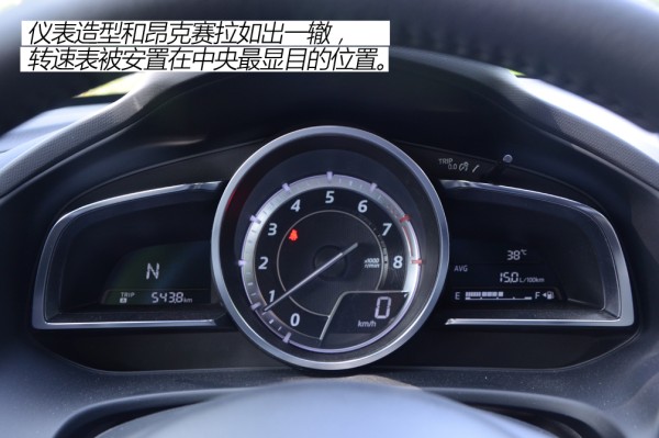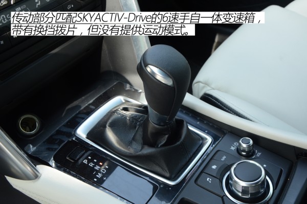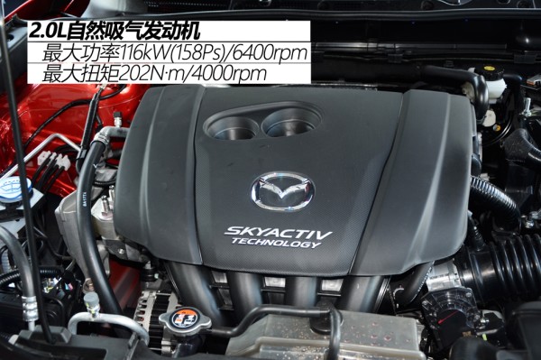 ●动力解析 试驾车型为2.0L+6AT的组合,相同的动力总成在马自达旗下包括昂克赛拉、阿特兹、CX-5在内的诸多车型上使用,可靠性已经得到了市场的检验,毕竟距离最早使用该套动力总成的阿特兹已经上市2年了,发动机在同级别中也是比较先进的。这台2.0L发动机经过细微调校,最大功率116kW(158Ps)/6400rpm,最大扭矩202N·m/4000rpm。