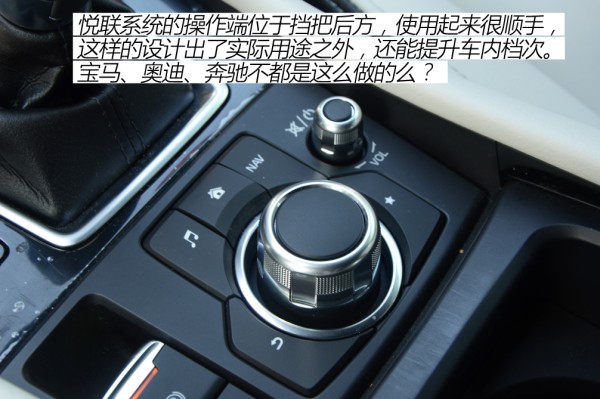 马自达悦联系统出现在CX-4上是意料之中的事,这台7英寸多媒体屏幕显示效果非常出色,支持触控和按键两种操作方式。导航、蓝牙、影音播放、倒车影像等常规功能都有配备,如果能结合时下流行趋势,搭载CarPlay功能就更好了。实体操作端位于挡把后方,和宝马的iDrive系统操作端相似。