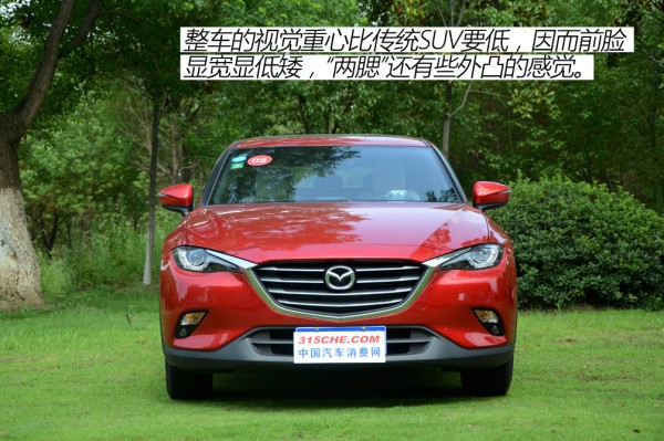 稍了解车的人都知道,很多细分车型只是在原版车型上的后半部分做出一些改动,这样一来整车的协调性就不是很好,看起来多少有些牵强。而CX-4可以说打破常规,完完全全是重新设计的一个外形,毕竟它是一台也要靠脸吃饭的车型。或者我可以这样形容它:SUV界的“轿跑”。
