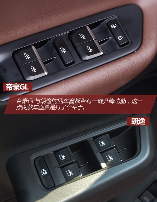 ●全文总结 通过对两车的比较可以看出,帝豪GL无论是外形设计、内饰质感、配置还是空间都能与朗逸水平相当,有些甚至还优于朗逸,只不过在部分人性化体验以及细节的把控上没有朗逸那么老道,不过差距并不是很大,因此帝豪GL与朗逸的比较不能算是旗鼓相当,当然更不是自取其辱了。总的来说,抛开品牌影响力不谈,帝豪GL还是有能力与朗逸、轩逸或英朗这样的合资热门掰掰手腕的。 |