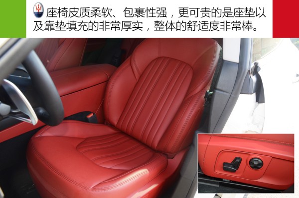 Levante座椅给我不错的好感,皮质柔软,包裹性强,更可贵的是座垫以及靠垫填充得非常厚实,整体的舒适度非常棒,主驾驶座椅支持8向电动调节,且带有腰部支撑功能。