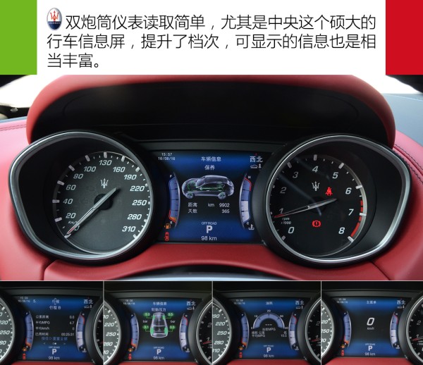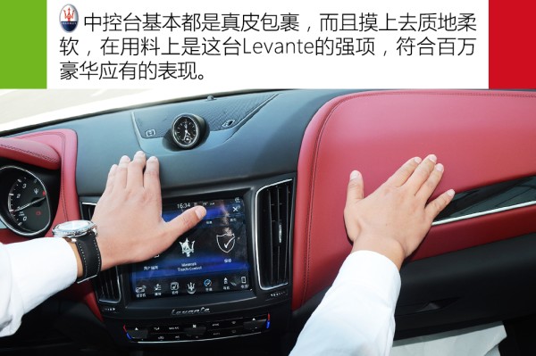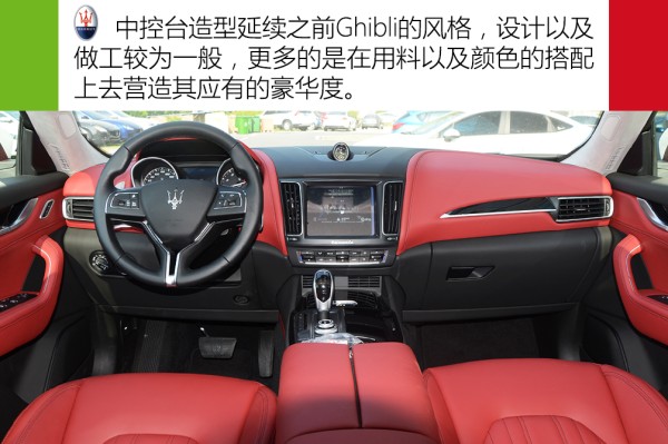 ●内饰解析 相比于年轻化的外形,内饰风格就要收敛很多。中控台造型延续之前Ghibli的风格。对手卡宴属于层次感和科技感比较足的内饰氛围,而Levante内饰属于简单大气一类,并不会有太强的层次感。就设计感以及做工而言,我个人更倾向于前者。而Levante优势在于内饰的用料以及色彩的搭配,中控台全部为皮质包裹,而且摸上去手感特别舒服,同时它提供能多种内饰的颜色搭配,实拍的红黑内饰搭配就挺不错,显得年轻张扬,很容易受年轻人青睐。