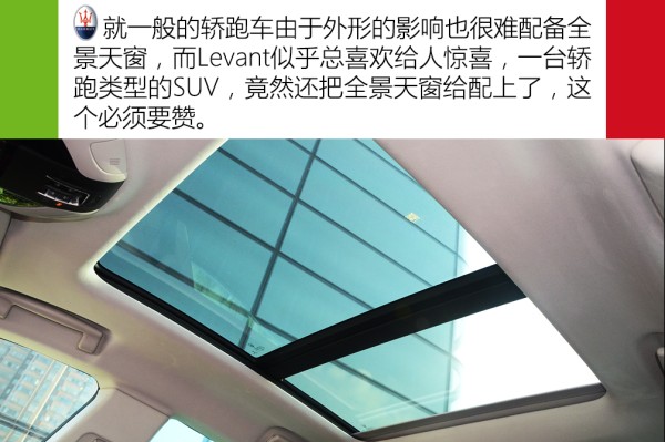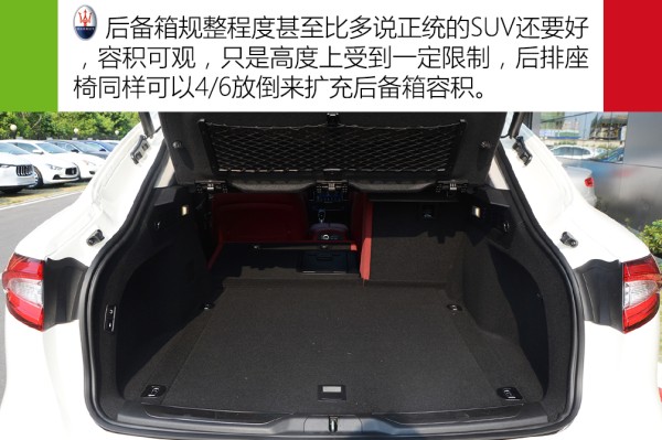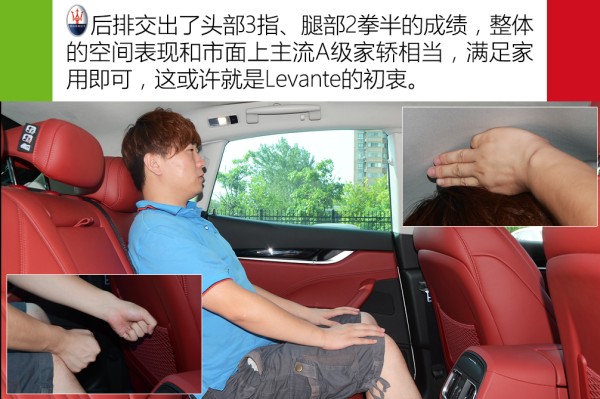 后排头部空间有限,为3指,而2拳半的腿部空间很不错了。后排中央地板凸起不算高,且有一定的脚部位置,中央座位并不是一个摆设,这一点比想象中的好。总体来说,Levante整体空间表现和市面上一些A级家轿相当,后排满足家用问题不大,我想这其实已经达到设计师们的初衷了,毕竟一味地加长轴距去增加后排空间是一些主打舒适的家轿做的事,对于追求操控的Levante来说,绝对是没有半点好处的。当然,如果你追求大空间,同级别可以去选择奔驰S级、奥迪Q7,这台Levante并不是你的菜。