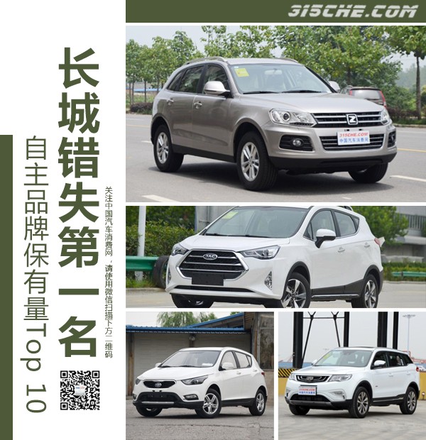 博瑞、博越以及即将上市的帝豪GL,这些最新推出产品在产品竞争力上已经稳超同级别的车型,是绝对标杆性的存在。460.8万的保有量虽然比不上长城汽车,但就最新产品的竞争力来看,显然吉利比哈弗更有潜力。 ●Top 2:长城汽车 ▼保有量:507.3万 ▼当前主力产品:哈弗H6 长城汽车能有500万的保有量一点不稀奇,哈弗H6这款车从出现开始就长期占据自主SUV销量排行榜的头把交椅,后期推出的H2虽然没有H6那么风光,但也从来没掉出前10,加上早前长城M2和M4积累下的保有量,如今获得亚军可谓名至实归,随着第一名——奇瑞的市场表现逐渐疲软,长城汽车很有希望加冕。