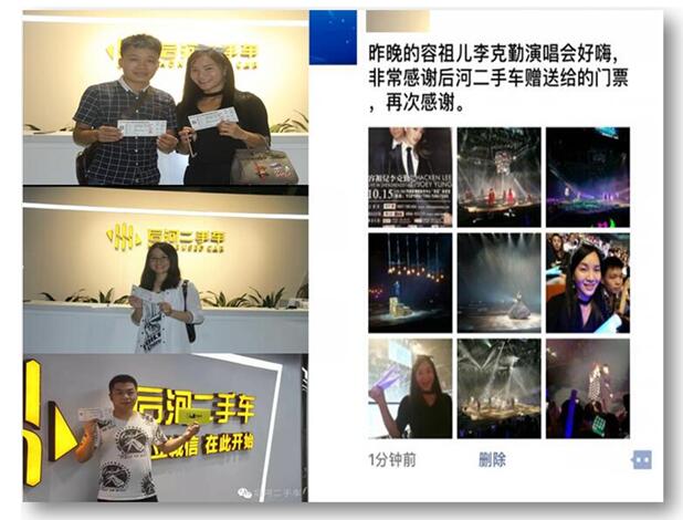 那么各位粉丝就会问了,究竟如何参加这次的免费送门票的活动呢? 其实非常简单,只要关注了后河二手车的公众号的小伙伴们点击进入我们的公众号【后河二手车】,在查看历史消息中找到“演唱会门票 后河免费送”这篇文章后,点击“阅读原文”即可报名哟!我们坚决不会泄漏各位亲爱的粉丝们任何私人信息,请大家踊跃报名哦!