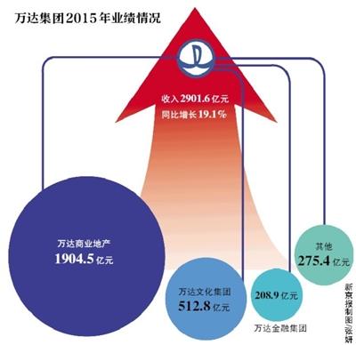 原标题:万达集团2015年收入增近两成 地产板块收入告别两位数增长