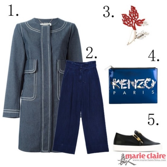 1. 大衣:MICHAEL MICHAEL KORS $462.53 2. 裤子:“BEARTWO” $121.29 3. 胸针:MARNI $684.29 4. 手拿包: KENZO $205.16 5. 鞋子:GIUSEPPE ZANOTTI DESIGN $623.55 |