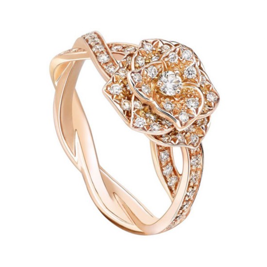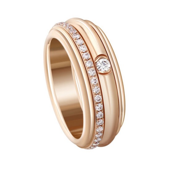 Piaget Rose戒指(G34UU300),18K玫瑰金, 镶饰71颗圆形美钻(约0.50克拉)。RMB 48,400 |
