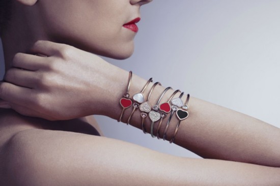 情人节之际推出的亮红作品全力支持Happy Hearts基金会 心形是爱情的象征,也是Happy Hearts基金会(Happy Hearts Fund)的标志。该组织由佩特拉?内姆科娃(Petra Nemcova)于2006年创立,旨在帮助因自然灾害而流离失所的孩童。自2013年起,Chopard萧邦就开始鼎力支持Happy Hearts基金会, 情人节之际,卡罗琳·舍费尔(Caroline Scheufele)以点缀一颗明亮红色心坠的手环,致献Happy Hearts基金会。