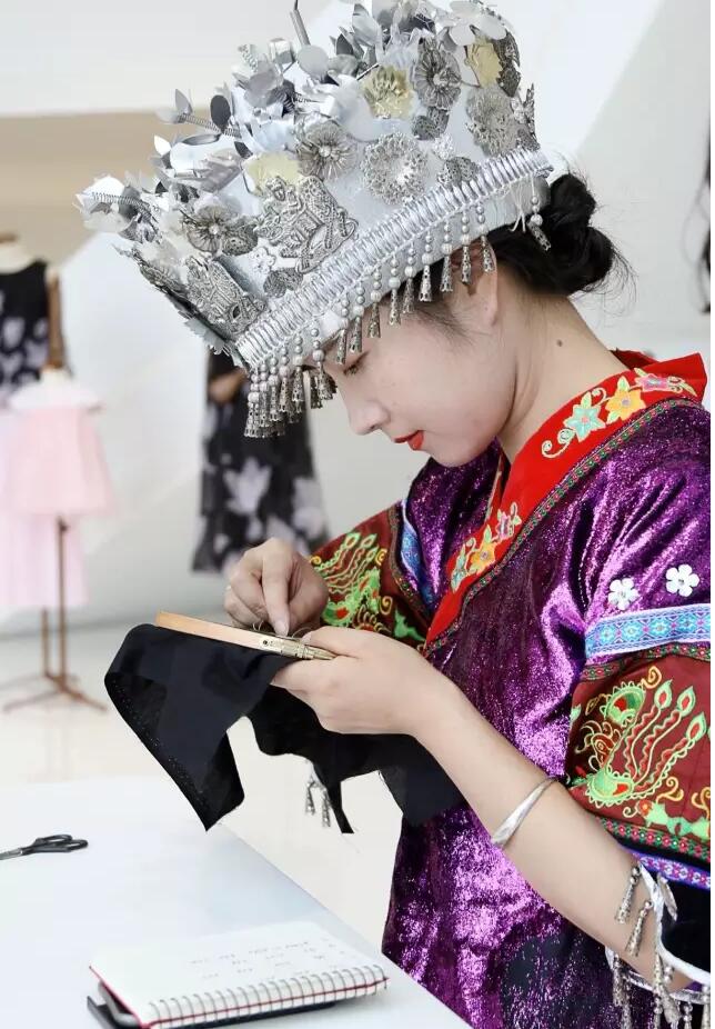 著名手作艺术家杨淑君现场展示非遗的苗绣工艺。
