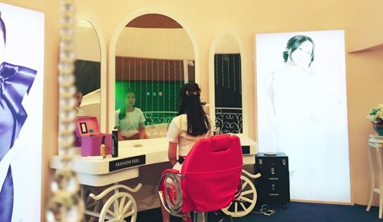黄金焕肤术体验一番,瞬间感觉皮肤细腻和水嫩了许多,不愧为槿花姿,还是不想走,最后一站“魔镜”区,心里充满无数疑问,该不会是“魔镜魔镜谁是这个世界上最漂亮的人吧”,嗯,希望是这样的。造型老师亲切的示意我坐在化妆镜前,看到镜子里的自己水水嫩嫩的皮肤心里好满足,突然这时化妆镜的中央出现了一个LED显示屏,什么情况,我不禁问起了造型老师,老师告诉我,这是一块神奇的屏幕,化妆镜内置了一块LED显示屏,我一边好奇一边惊讶“头彩真的是太高大上了”,还没等我说完,屏幕已经对我开启了“刷脸”认证,几秒后屏幕里竟然出现了一个大美女“范冰冰”,屏幕里显示我的脸型和范冰冰最为相似,我突然又惊又喜,突然不知道说什么好,紧接着屏幕又对我的肤色、五官轮廓分析,推荐适合我的化妆品、发型、发饰佩戴,我不由得彻底服了,这不就是我们女生一直想要的东西吗,头彩竟然在十周年现场让梦想成为了现实。