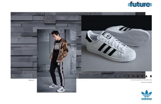 阿迪达斯Originals 十月新款Superstar系列潮鞋采用了简约设计的风格,即通过化繁为简的设计诠释出自我时尚态度。以邓超海报上穿着的新品Superstar鞋款为例,该款 Superstar潮鞋从经典作品中汲取创作灵感,沿袭了经典的贝壳头和三间条纹设计,但在配色上,却大胆的运用了黑白撞色设计,即通过白色的鞋面、鞋底与黑色三杠及鞋后跟形成鲜明的视觉反差。而恰恰是这种回归原始的黑白设计,在这个精彩纷呈的时代里会更加引人注目!