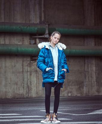 此次推出的City Trail系列新品从不断变化的城市环境中受到启发,以最忠于自我的配色来发掘城市中被遗忘的历史章节。新款服装主要以蓝色、黑色和灰色为主色调,整体风格更偏现代感。比如采用部落蓝配色的中长款羽绒服内搭中麻灰的套头衫,再配上一条黑色的绑腿裤和玫瑰金色的中帮潮鞋,就能轻松展现出一种青春洋溢的街头时髦范,让你瞬间区别于周边人群,特立独行!