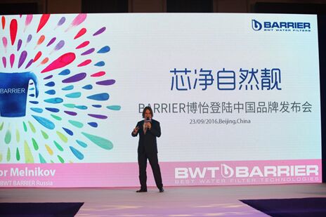 BARRIER中国区COM罗枫先生介绍独一无二的定制化滤芯 无可媲美的军用品质 成就国际领先的净水技术实力 此次发布会,BARRIER品牌创始人Viktor Saprykin先生、BWT-BARRIER集团 CEO Igor Melnikov先生更是亲临现场,传奇人物带来中国消费者健康饮水信心。 20世纪90年代初,品牌创始人Viktor Saprykin联手Alexander Maslykov教授成立了METTEM科技公司,BARRIER品牌由此诞生。品牌自1993年成立以来,一直致力于净水领域的技术和产品研发,其独树一帜的净化水技术被率先运用到军用系统,1995年,BARRIER与俄罗斯国家航空航天基地合作,建成第一个大规模的BARRIER净水产品生产基地,这也标志着品牌正式从军用拓展至民用领域。