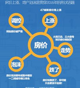 久热不衰:房价问题和地产泡沫话题贯穿2016 受年初房价暴涨影响,买房问题一直是用户关心的热点之一。报告显示,用户热议角度聚焦五大方面,其中房价上涨最受关注。