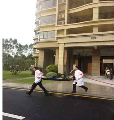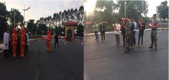 图为:物管部负责人(赵杰)为大家宣布此次演练的意义及目的; 消防演练分别为四个阶段: 1、消防技能演练;水带一带一枪、消防现场救护实操: