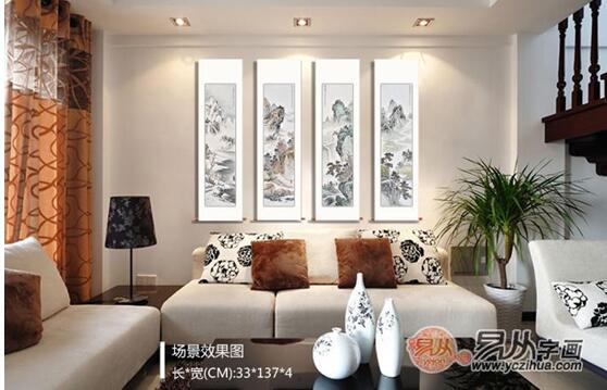 四季四条屏 王宁写意国画山水作品《春夏秋冬》 作品来源:易从网 【点评】王宁的写意山水画四条屏装饰下的客厅装饰画效果图就相对比较逼真,整个家庭温馨、舒适,装饰画在整个客厅占的比例不是很大,与边上的花草等相映成趣,也是很不错的一种设计,这样的装饰能给人一种暖心的感觉。 山水名家王宁老师所作《春夏秋冬》山水四条屏,以中国古代雅士闲云孤鹤般的高雅生活为表达对象,通过四幅意境高远空灵的山水表达,给人极佳的艺术享受。 四、室内装饰画之(最生活) 房子的面积不用太大,只要够住就好~家居不用太奢华,只要自己喜欢就好~房子的位置不需要很好,只要方便就好~所以看到藤子的家,都特别有亲切感,仿佛跟自己为梦想而奋斗的家。藤子的家,也许正是真实80后的一个缩影,在一个有限的空间,通过各种巧妙的装饰搭配,把自己的家完美的展示出来,也把自己对家的梦想变成了现实。