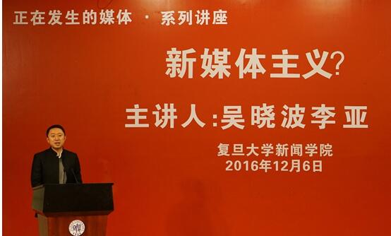 新媒体将把人类带向一个怎样的时代?由复旦大学新闻学院主办的《正在发生的媒体》系列讲座第五期【新媒体主义?】于12月7日举行,一点资讯CEO兼凤凰网总裁李亚与知名财经作家及自媒体人吴晓波受邀做了主题演讲,并在复旦大学新闻学院张力奋教授主持下展开了一场媒体平台经营者与内容创业者的对话。