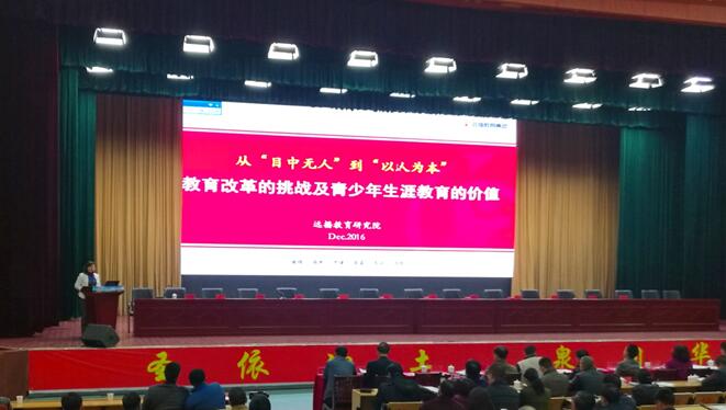 主题:深化改革,提高学校办学质量,培养学生核心素养;解读民办学校分类管理 内容:专家报告、经验介绍、研讨交流、考察学校;公布特色校及先进校评选结果 在本次会议中,远播教育研究院北京所副所长常雪亮女士发布了主题演讲:《从“目中无人”到“以人为本”——教育改革的挑战及青少年生涯教育的价值》。