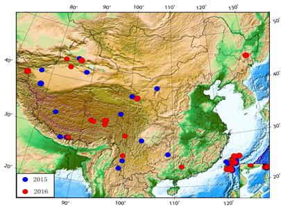 2015年1月至2016年12月12日全国MS≥5.0地震震中分布图