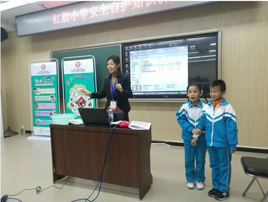 孩子们表演情景剧《烫伤了,怎么办?》 鼓励孩子演讲科普绘本《皮皮的故事》,希望他们能把学会的知识传递给身边的小朋友、家人,从小培养孩子的公益心。 给教师培训后,由北京爱无痕烧烫伤康复关爱中心主任周丹为一年级37名同学进行课程演示,校长和班主任老师在现场观摩学习,课程结束后班主任老师激动的说“这个课程寓教于乐,孩子们在玩中学,既有趣又实用,并且鼓励孩子把学到的知识传递给更多的小朋友、家人,从小培养孩子的公益心,”老师对课程的落地开展更加有信心了。