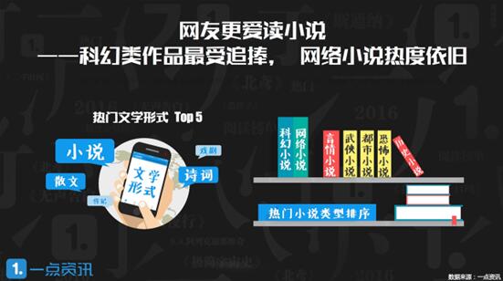 科幻类作品最受追捧,网络小说热度依旧 在各种文学形式中,小说因故事性强、通俗易读最受网友的欢迎。金治介绍,随着人类科技的不断发展以及人性对未知事物强烈探索欲望,科幻类小说也成为近年来最受欢迎的题材之一,如已获得雨果奖的《三体》、《北京折叠》等作品备受追捧。而网络小说凭借其超高人气和强IP属性,成为网友休闲阅读的主流选择之一。