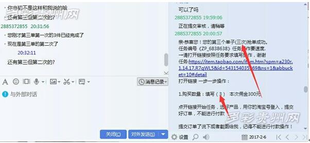 小伊与刷单骗子的QQ对话截屏 “兼职”:“刷一刷”就能赚快钱? 2月6日,小伊在上网时无意间看到了一条招聘兼职淘宝刷单的信息。信息里表示,只要按其要求完成刷单任务,系统5-10分钟内就会自动结算,并向刷单者返还本金和佣金,刷任务金额越高佣金也越多。 竟有这样“轻松赚钱的兼职工作”?小伊立即加了对方的QQ号表示想试试。于是,对方发来一个试拍任务。 第一单任务,对方要求小伊刷100元的物品,不到五分钟,对方就给小伊返了105元。 骗局:1万多元刷“飞”了 尝到甜头的小伊立即又领了第二次任务。对方表示,第二次任务分为3单:第一单要刷300元,第二单刷两件1100元的物品,第三单刷三件2790元的物品。 “我当时也没想这么多,稀里糊涂就刷掉了10400元。”小伊非常郁闷地对记者说,“可是等了十多分钟,系统也没有返钱回来。” 小伊急忙去找对方质问,对方则表示,第二次任务要刷三单,小伊只刷了一单,还需要刷第二次、第三次才能返钱。 小伊这才反应过来自己被骗了,立即报了警。 揭秘:刷单套路四步“吸金” 所谓“淘宝刷单”,简单说,就是通过虚拟的“买买买”提升淘宝店铺某宝贝的销售量。在此类骗局中,骗子大都是向受害人的“淘宝旺旺”发送兼职刷信誉的信息,再一步步引导受害人刷单转账。 据贵阳反诈骗中心民警分析,骗子的刷单套路一般分为四部:一是返还本金,骗取受害者信任;二是亮出“公司信息”,进一步诱骗受害者;三是伪造“交易记录”,以此打消受害者疑虑;四是发“防骗提醒”,让受害者以为骗子是正规商家。 记者在调查中发现,不少网友也曾遭遇过类似的诈骗,其中以学生居多。贵阳反诈骗中心提醒广大市民,遇到网络兼职刷单,一定要提高警惕,轻松赚钱不可信,赚钱切勿只求捷径。 虚假兼职 一:300以上的流动资金,押款:骗子会说不要任何押金,但是要求你有流动资金,用以购买商品。他们 会叫你用自己的钱先付窾,然后再将购买商品的钱窾和你的佣金打给你。但是做虚拟单是不经过淘宝交易的,做了相当于是直接把钱送到了对方账户里 !
