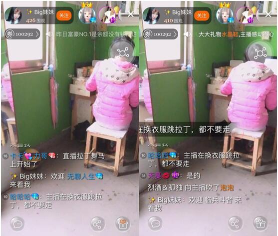 进来直播间的观众越来越多,直播间气氛也越来越嗨。 一支热情的拉丁舞结束,Big妹妹与粉丝们聊了一会表示要下播去上课了。 粉丝们热情的说着拜拜~下次开播要来捧场~~~