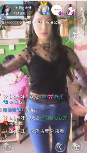 粉丝“哈哈哈”便自觉担当场控说道:主播去换衣服跳拉丁啦,大家都不要走~~~ 主播Big妹妹很快换好衣服开始直播跳舞,又因为自己刚开学舞蹈服也没带齐就换了个上衣,于是穿着牛仔裤就开始跳上了;小编表示这样的妹子也是---率性至极~~~