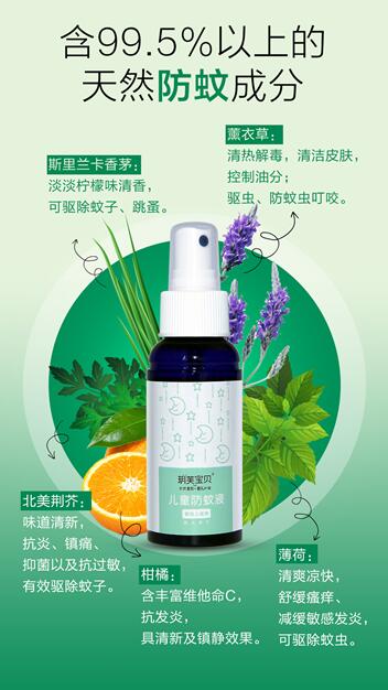 因此,驱蚊液成分一定要天然安全,用气味驱蚊方式更受青睐,如果产品含有避蚊胺或驱蚊酯等成分,比例应在安全标准内;且所含原材料要清晰标出,以便家长避开过敏原选择合适的防蚊液;驱蚊液要有效且驱蚊液不宜效力过长,因为高浓度会刺激宝宝皮肤,给肌肤造成负担。