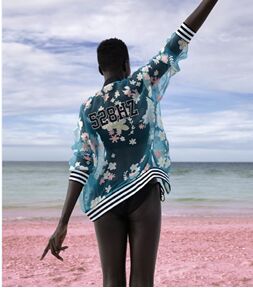 新款Logo Tee、Varsity 运动夹克以及全新面世的开襟 Track 夹克与雪纺绸面料夹克,因极富童趣美感的菊花图案而激情洋溢,富有动感;男女系列沙滩装、休闲套装、运动套装中因梦幻呈现跳色抽象印花而让人如梦似醒;游泳短裤、露脐 Tee 以及沙滩短袖衬衫等一系潮流单品,搭配创意十足的Originals logo和博人眼球的绝亮色系,轻松打造夏威夷海滩的吸睛造型。