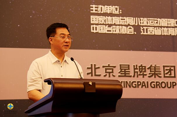 图3 国家体育总局小球运动管理中心主任、中国台球协会主席张小宁 发布会上,国家体育总局小球运动管理中心主任张小宁认为:“世界公开赛在海口连续举办三届,为中国台球运动的发展和普及做出了卓越贡献。本届比赛移师江西上饶玉山,相信继2016年中式台球世锦赛之后,会再次为全世界球迷奉献一场精彩纷呈的斯诺克视觉盛宴,也将带动台球产业的进一步发展。”